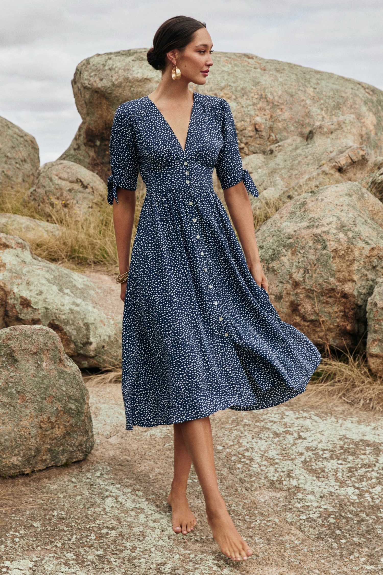 Introducing the star of the show… Saskia in Stardust. This beauty lets you shine with its flattering silhouette and beautiful sleeve details. What more could a Zimi girl ask for!