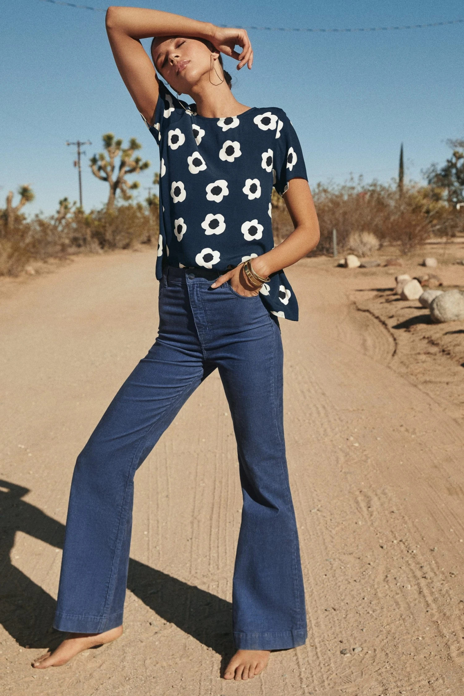 Styled with the Drew Flares In Teal Corduroy.